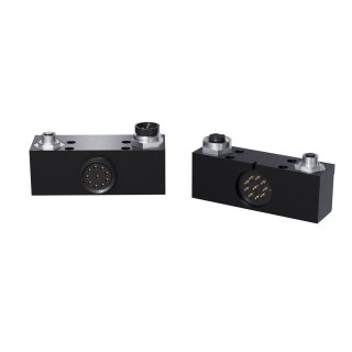 9120-TES-M Axial orientation Ethernet Pass Through module with connectors for Ethernet and Aux Power
