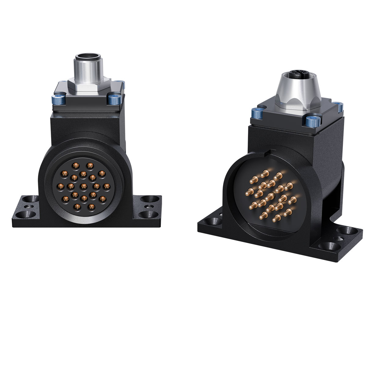 - 4 针 M12 公接头和母接头。