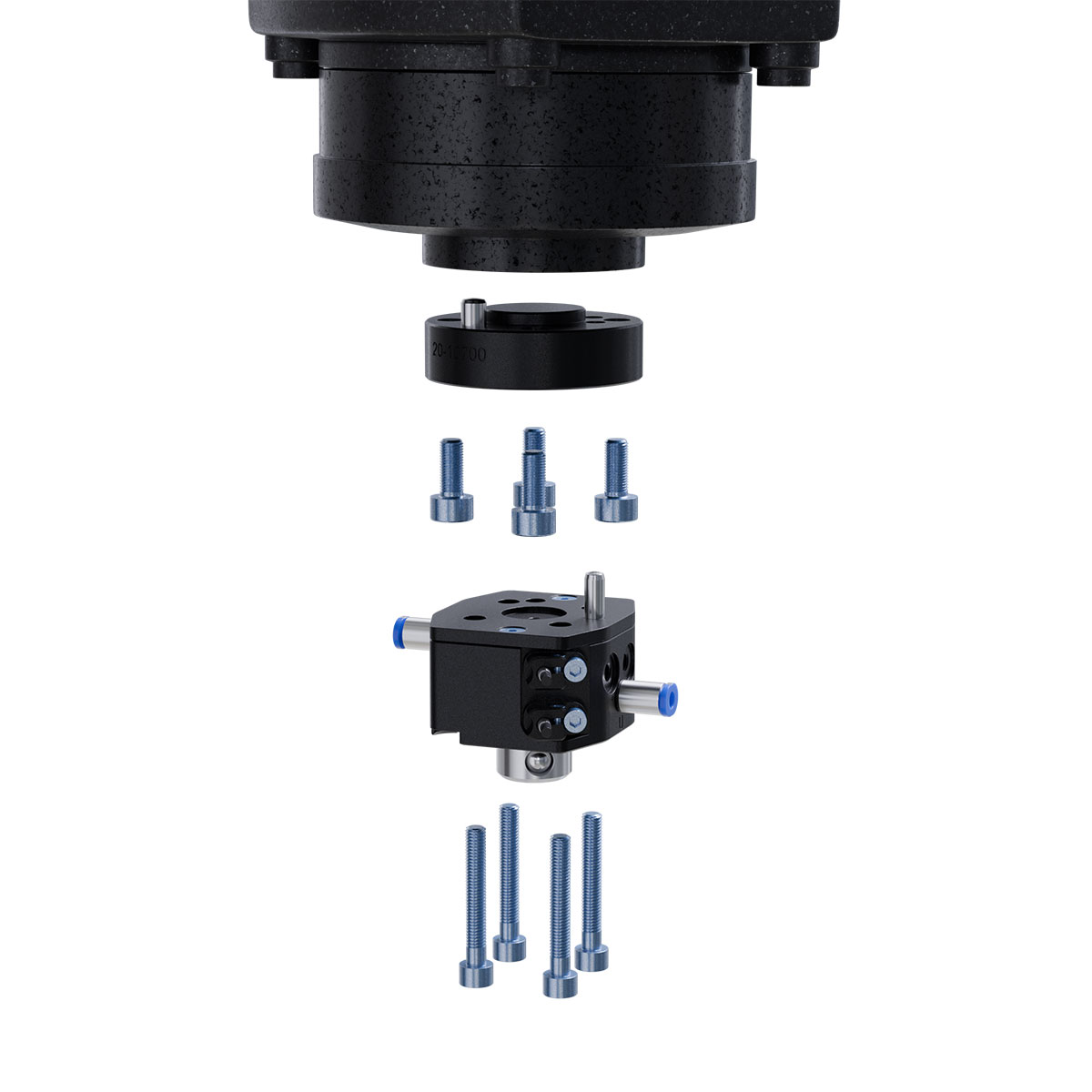 - 可直接安装到 ISO 9409-1-31.5-4-M5 机器人手腕上,最大限度地降低堆叠高度。还支持其他安装模式